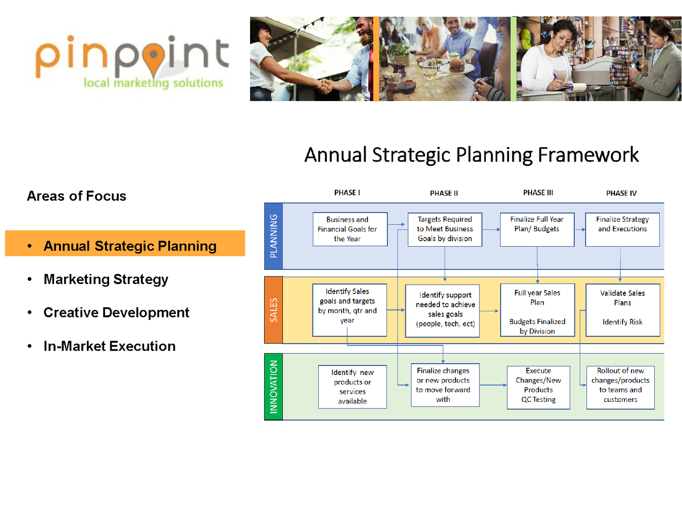 Our consultative and collaborative approach provides our clients with the tools they need to plan their business growth, identify new opportunities and help them execute their in-market plans.